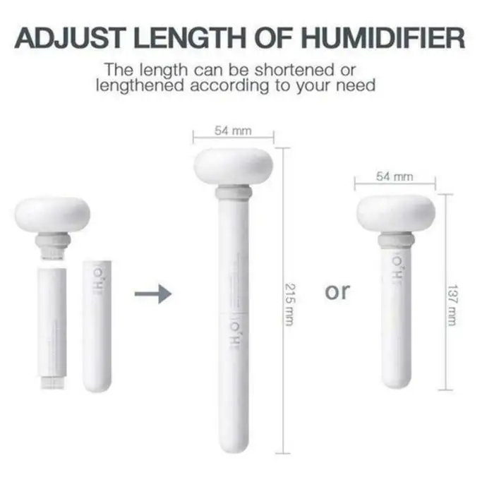 2. Adjustable the Length-- You can choose the longer humidifier and shorter one due to adjustable length. It can easily fit in purses, backpacks, and suitcases.