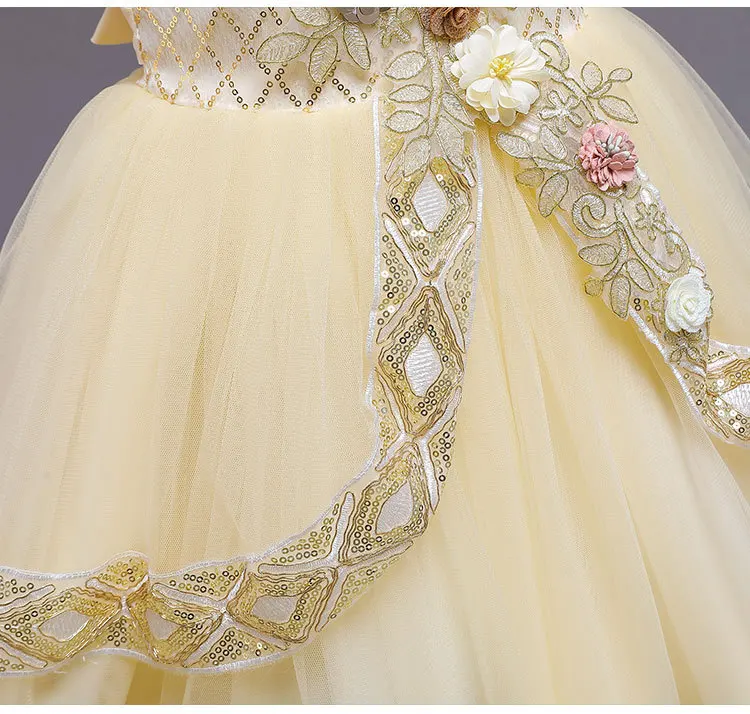 Платье для девочек платье принцессы с цветочным рисунком на одно плечо новое