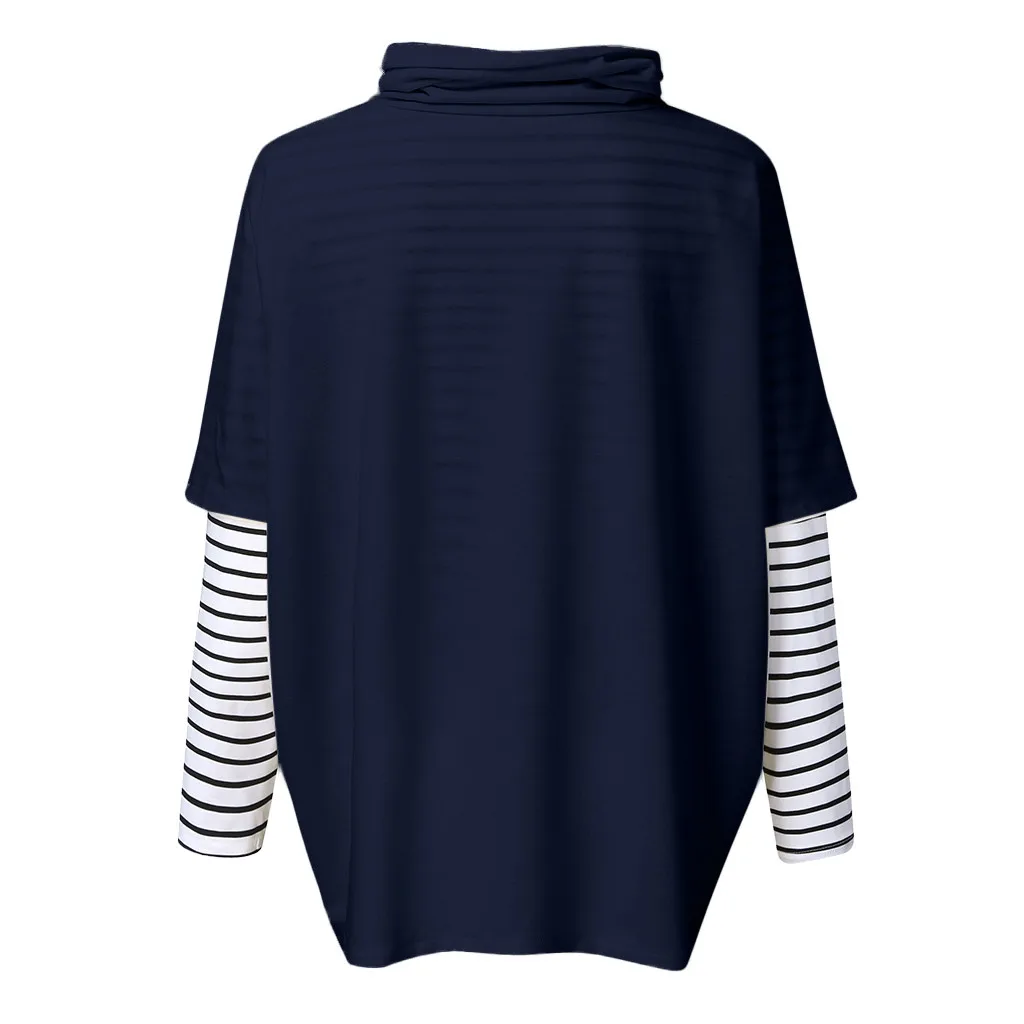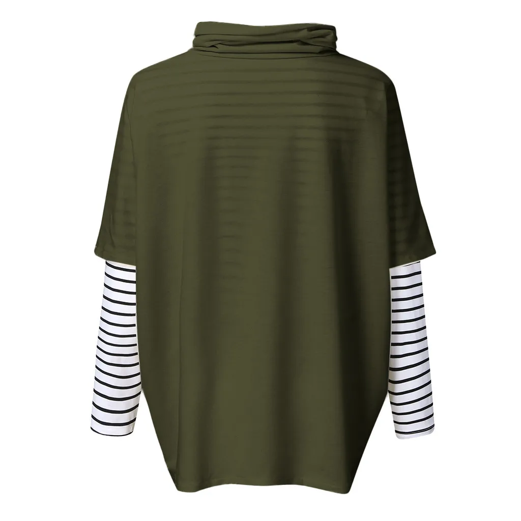 Женский пуловер в полоску с длинным рукавом и высоким воротником для беременных