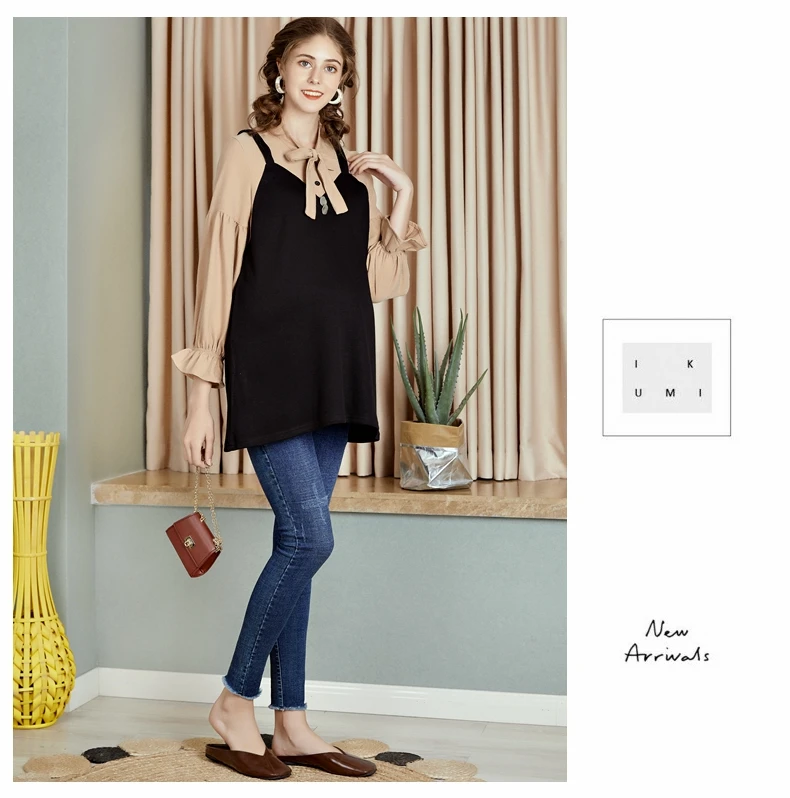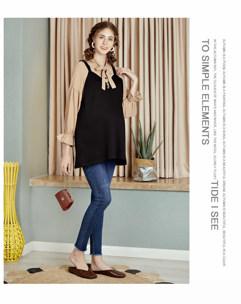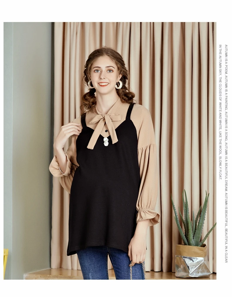 2019 платье для беременных, осень, новая мода, воротник-стойка с рукавами-фонариками, большой размер, рубашка для беременных, рубашка JoyRay. B