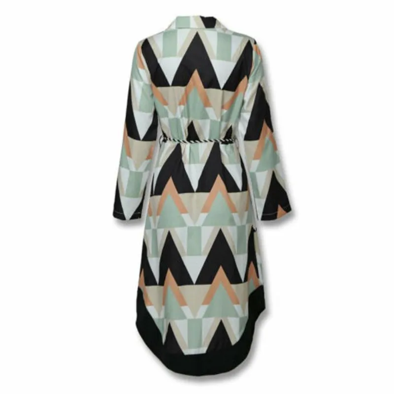 Women Long Maxi Dress Ladies Fashion Wave Print Asymmetrical Split Hem Long Sleeve Shirt Hot Selling Dresses Vestidos Verano