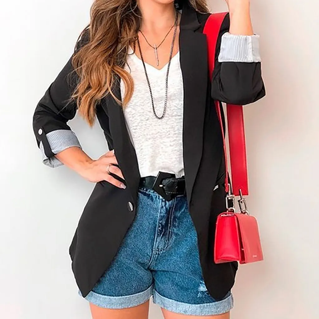Женская однотонная куртка с отложным воротником, пальто с длинными рукавами, парка, верхняя одежда