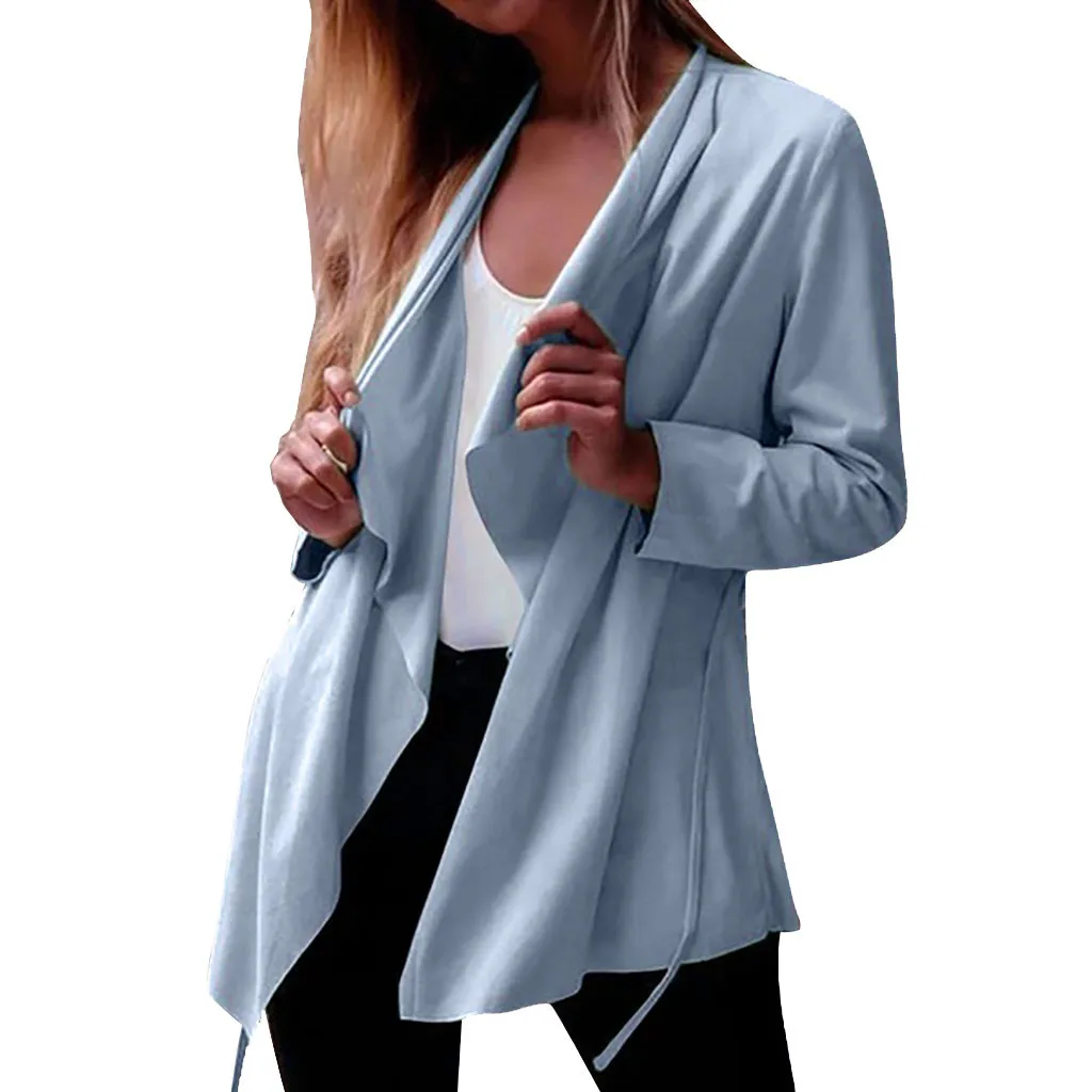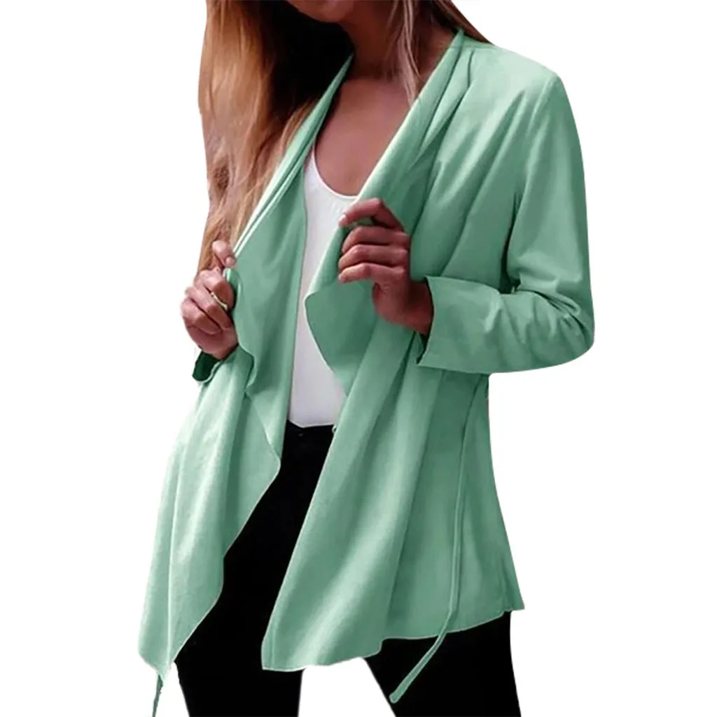 Женский однотонный кардиган с отложным воротником и длинным рукавом, тонкое пальто, верхняя одежда