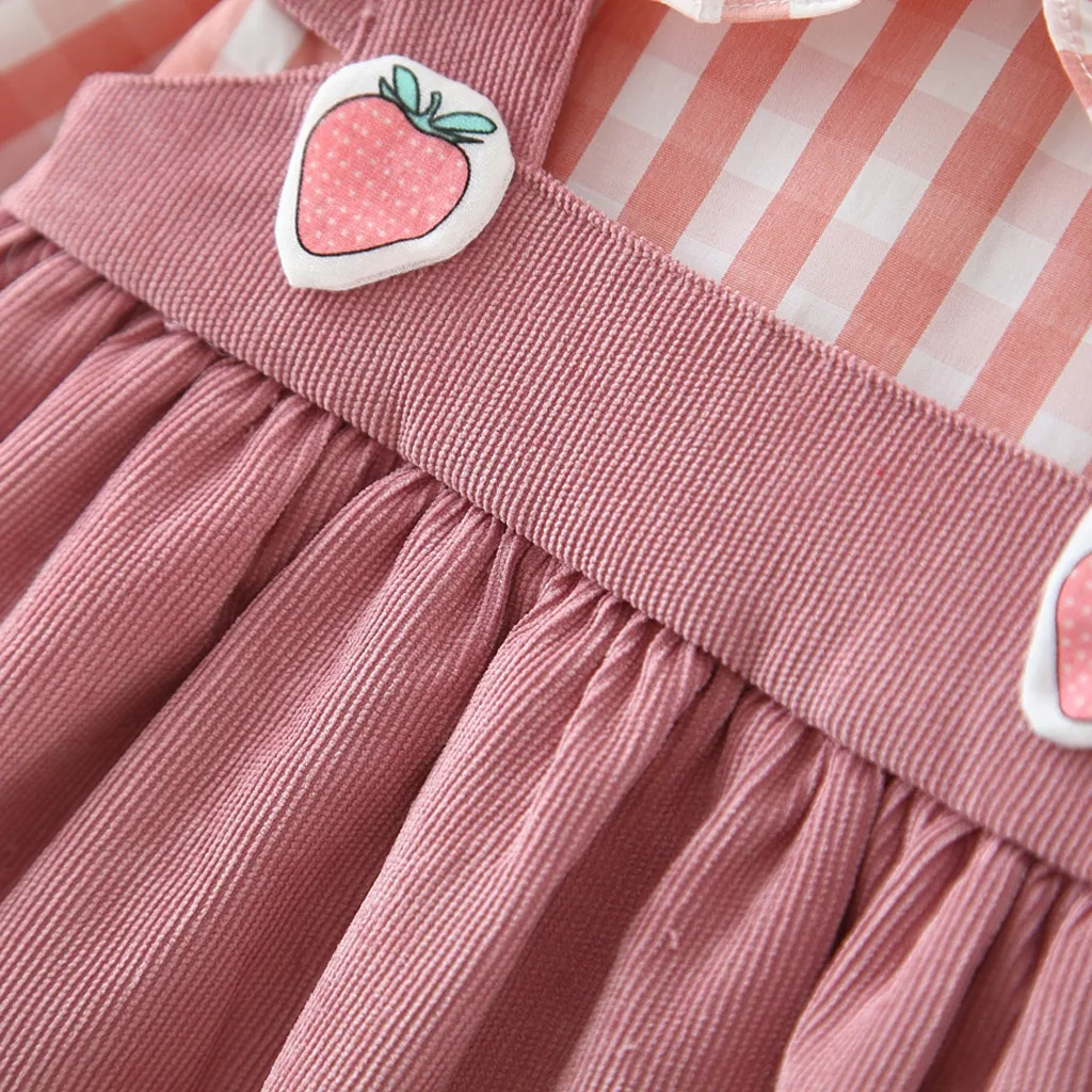 Повседневное платье для маленьких девочек в клетку с оборками и рисунком клубники