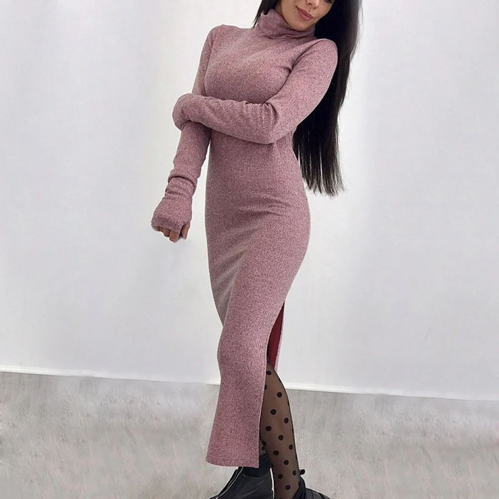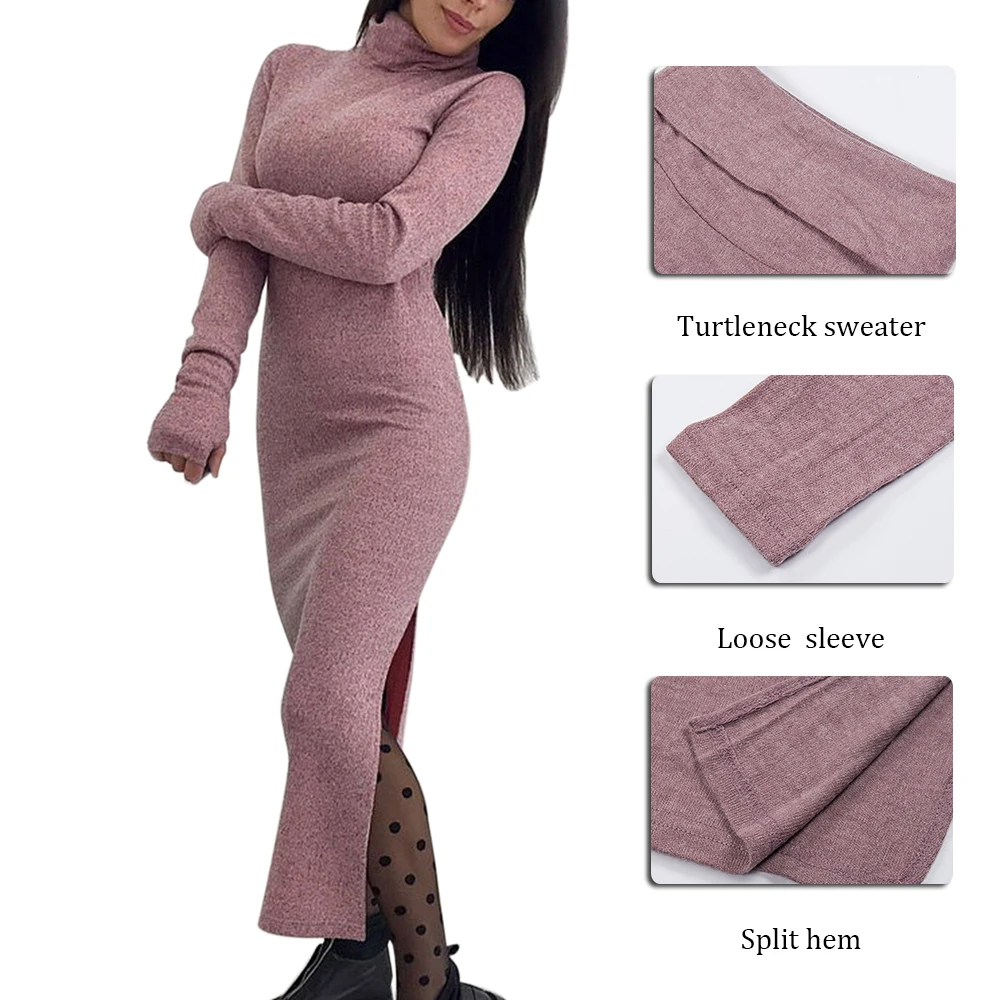 Красивая и теплая водолазка с разрезом по подолу и длинными рукавами.
