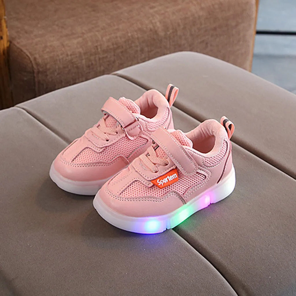 Одежда для маленьких девочекСетчатый дышащий светодиодный светящийся спортивная обувь кроссовки