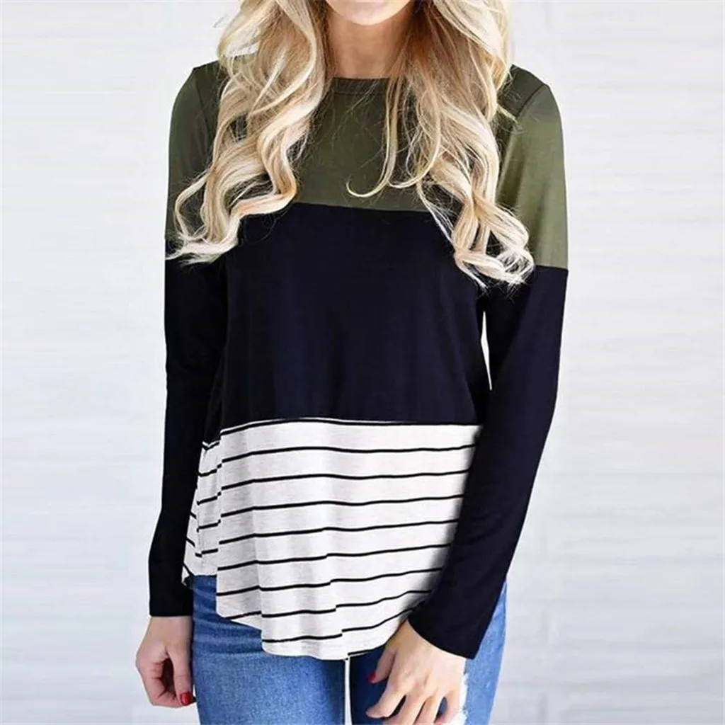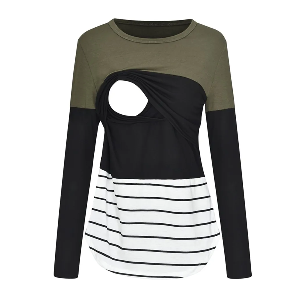 Women Maternity Long Sleeve Striped Nursing Tops T-shirt For Breastfeeding