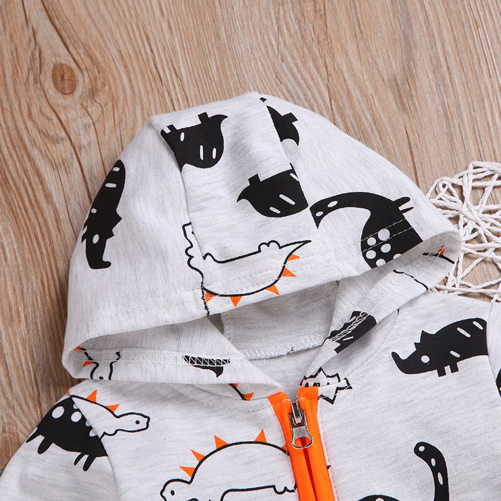 Комбинезон на молнии с капюшоном и рисунком динозавра для новорожденных мальчиков и девочек; комбинезон; комплекты одежды