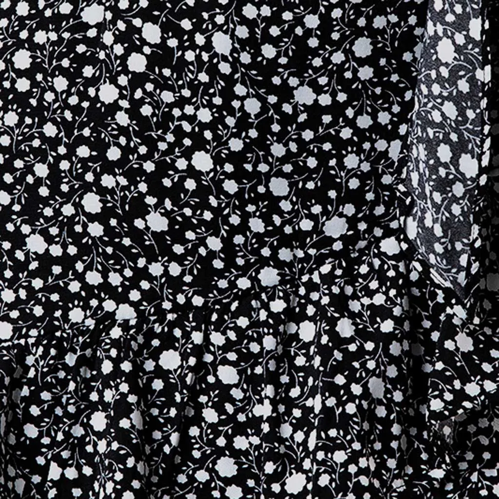 1. Особенности: шнуровка, v-образный вырез, короткий рукав, оборки, принт, мини-платье, модная одежда, летнее платье, мини-платье в богемном стиле.