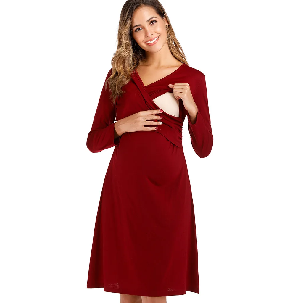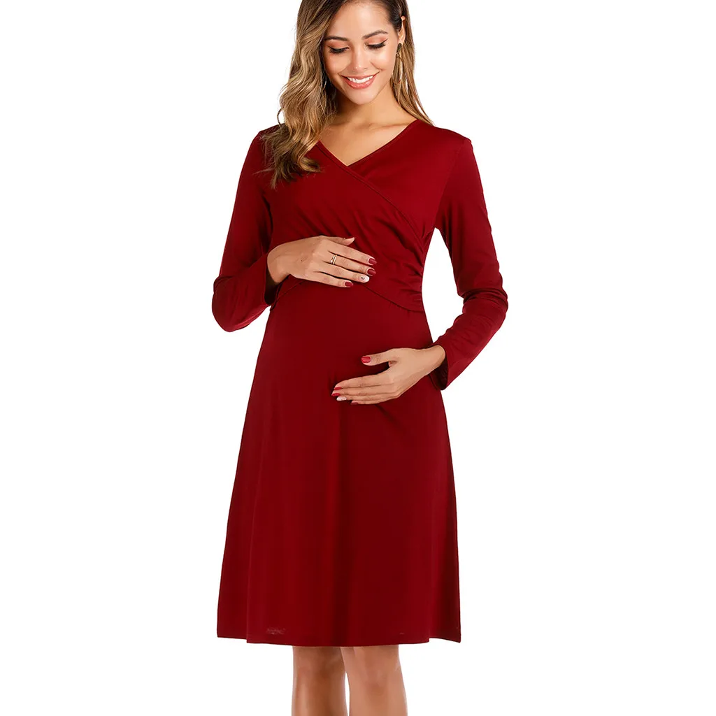 Женское длинное платье для беременных с открытыми плечами и длинными рукавами с принтом листьев