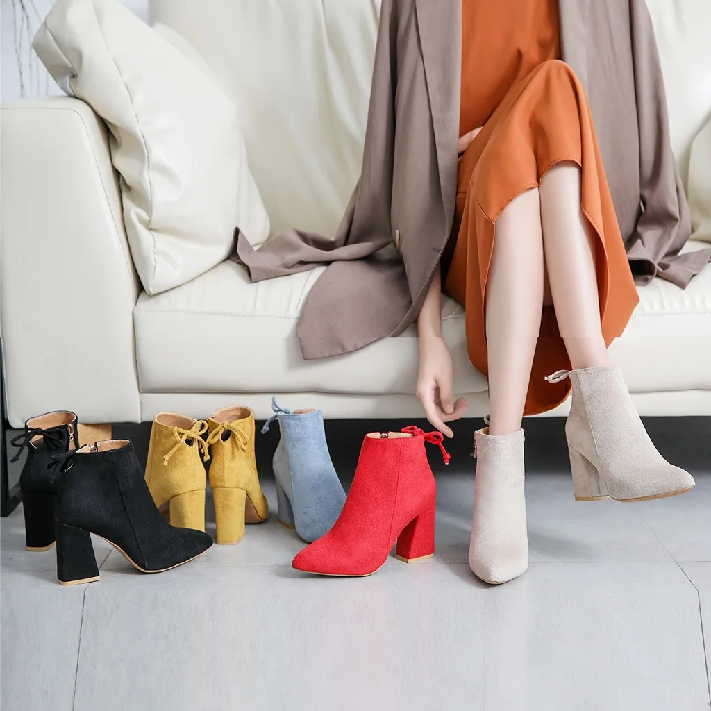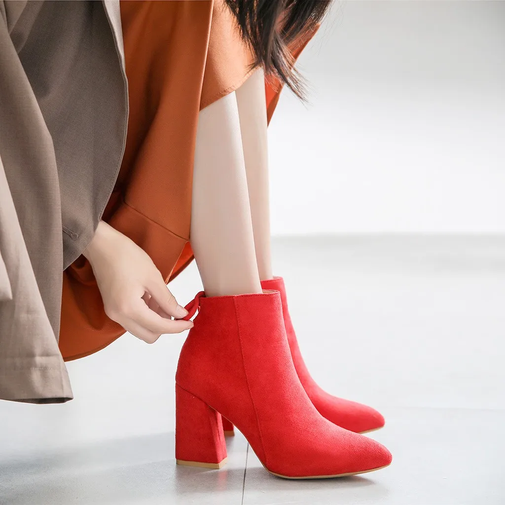 Женские модные однотонные ботильоны на молнии; Теплые повседневные ботинки с острым носком