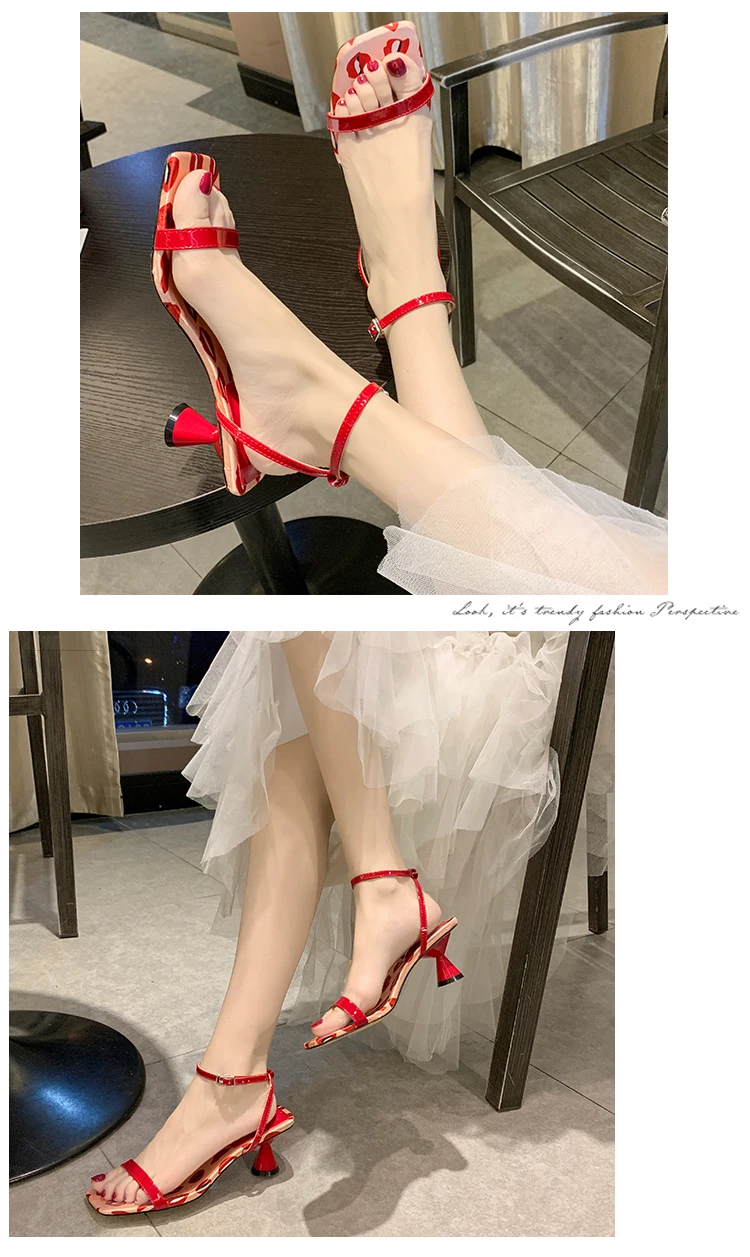 Женские босоножки из лакированной кожи с острым носком на высоком тонком каблуке