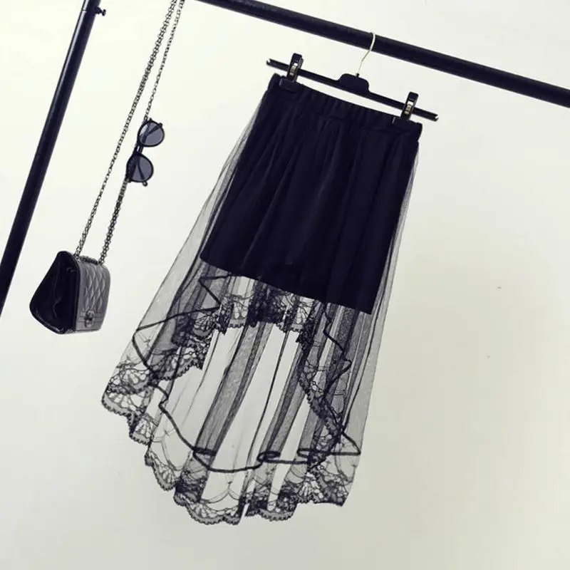 Высокая талия, подкладка, двухслойная, чистый Сетчатый внешний слой, сплошной цвет, застежка, длина миди до середины икры, 2 цвета на выбор.