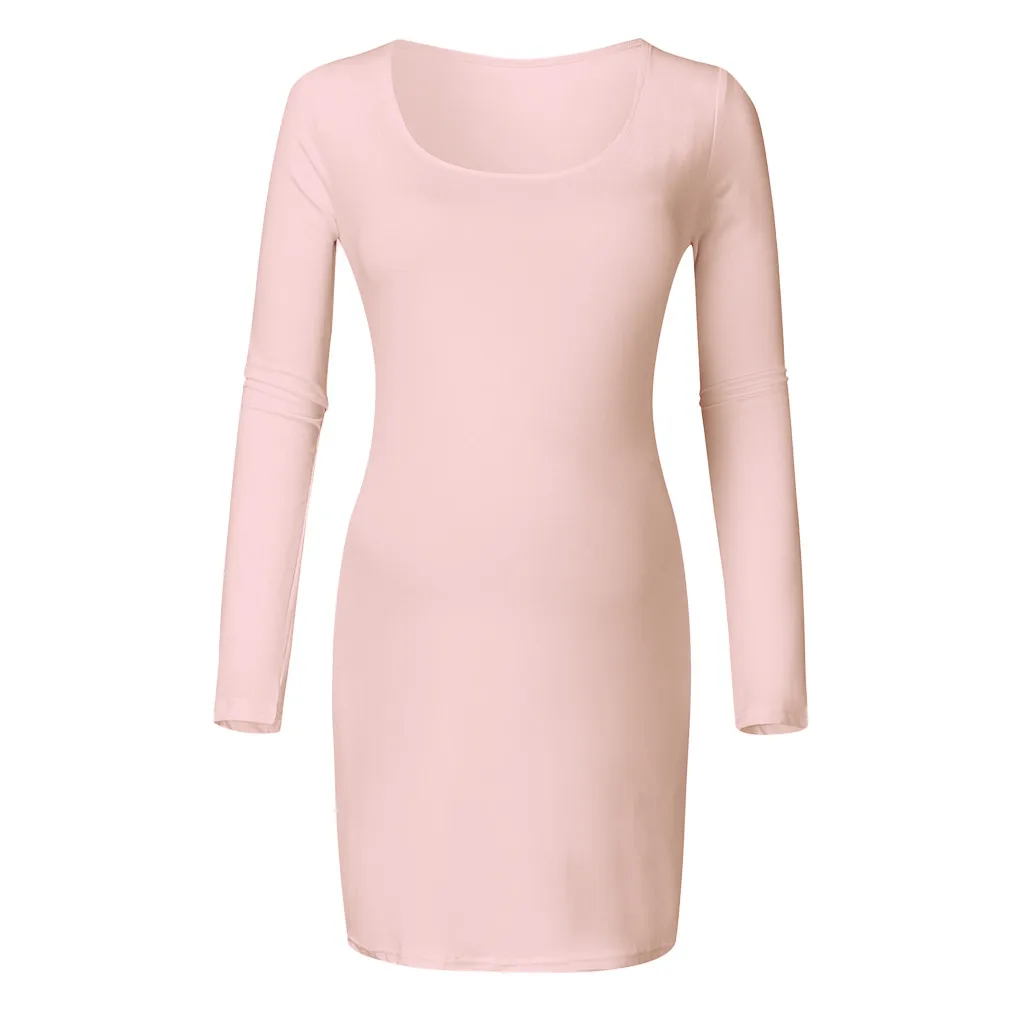 Женское мягкое мини-платье с круглым вырезом и длинными рукавами для беременных