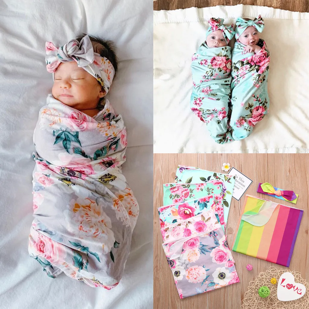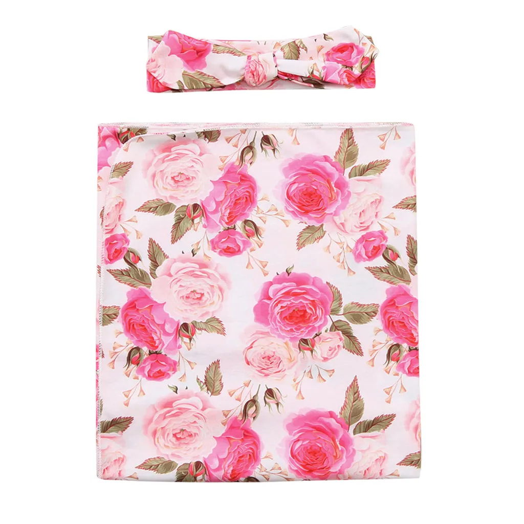 1Пеленка для ПК + повязка на голову 1 шт. Для малышей, с цветочным узором, пеленка Одеяло одеяло для новорожденных Пеленальное Одеяло Обёрточная бумага повязка на голову
