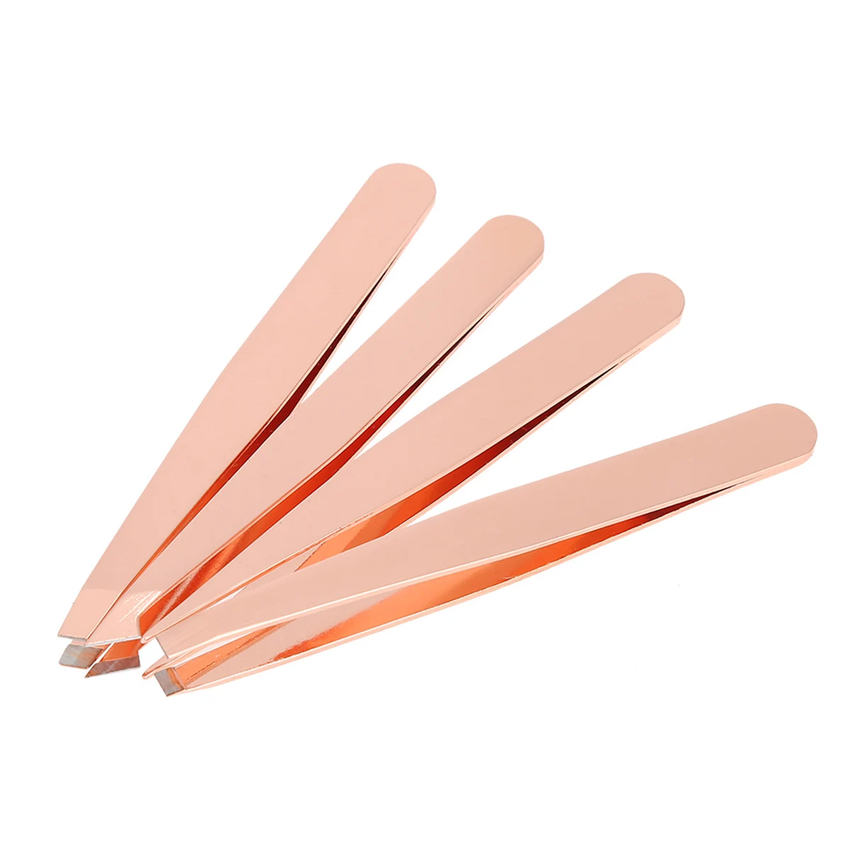 4 шт. пинцет для бровей профессиональная роза Золото Нержавеющая сталь Наклонный наконечник пинцет