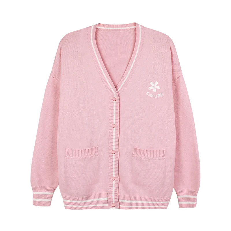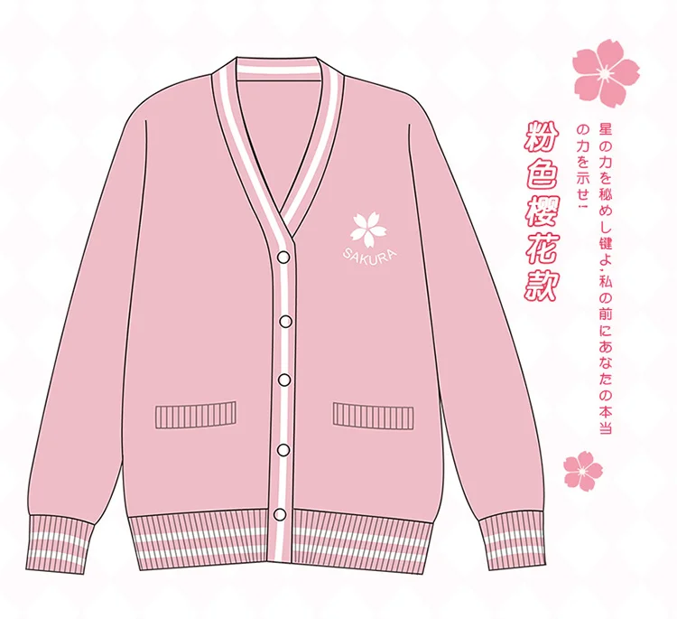 Свитер с японским цветком вишни, униформа JK для девушек, аниме, похититель карт, Сакура, Косплей Костюм-свитер, колледж, розовый, белый топ Лолиты