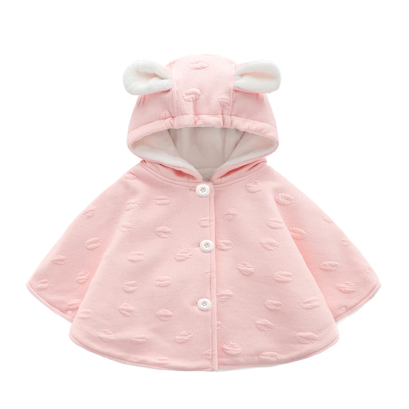 2020 г. Зимнее однотонное пончо с капюшоном и заячьими ушками для маленьких девочек