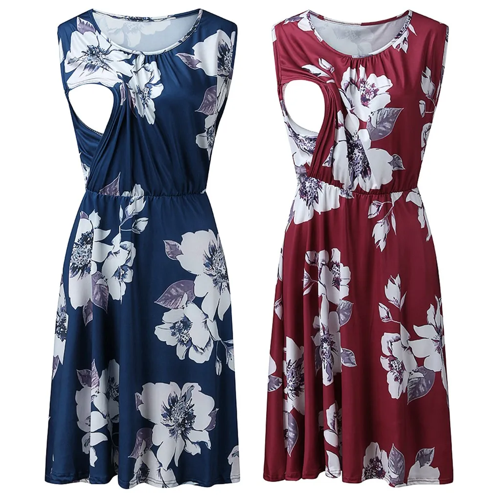 Женское платье для беременных без рукавов с цветочным принтом трапециевидной формы с рюшами