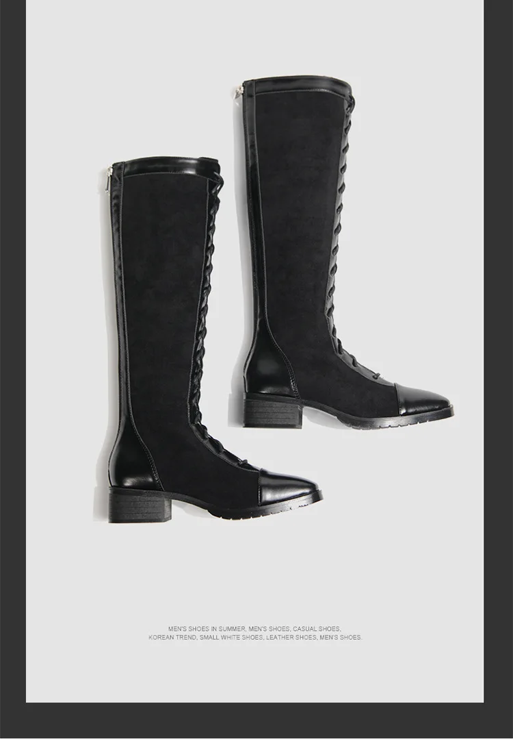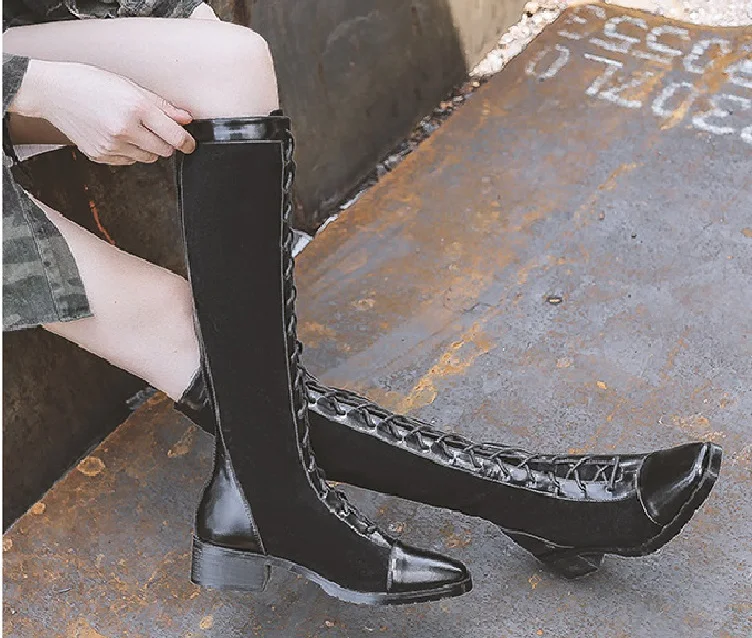 Женские ботфорты на шнуровке; Ботинки martin на толстом каблуке; высокие ботинки-гладиаторы; черные кожаные женские ботинки; Женская обувь в стиле панк