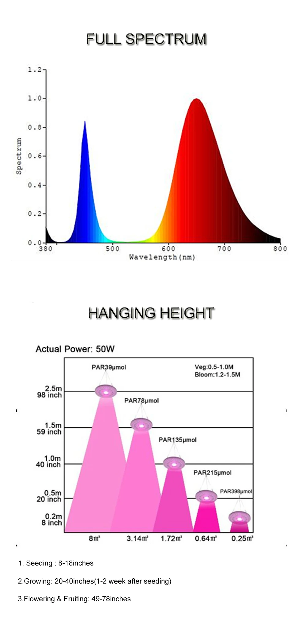 Brand NameSEAMETALModel NumberLed grow lightMaterialAluminumItem TypeGrow LightsWidth2.2cmPower SourceACLength20Voltage85-265VFeaturesFull SpectrumCertificationCCCCertificationROHSCertificationFCCBody MaterialAluminumLight SourceLED BulbsWarranty1 YearIs DimmableNoMeasurement unitset/setsEach pack1Product nameLamp for plantsProduct numberC39670Plug for grow lightUS / EU / UKFitolamp power50WFitolamp lumen5000LMFunctionFor plants, flower, seedlings grow, Hydroponics, garden, greenhouseLife span50000HFeature 1With switch button and natural cooling(Heat dissipation )Feature 2Without noisePackage1 * grow light + 1 * power cable + 1 * hanging wire