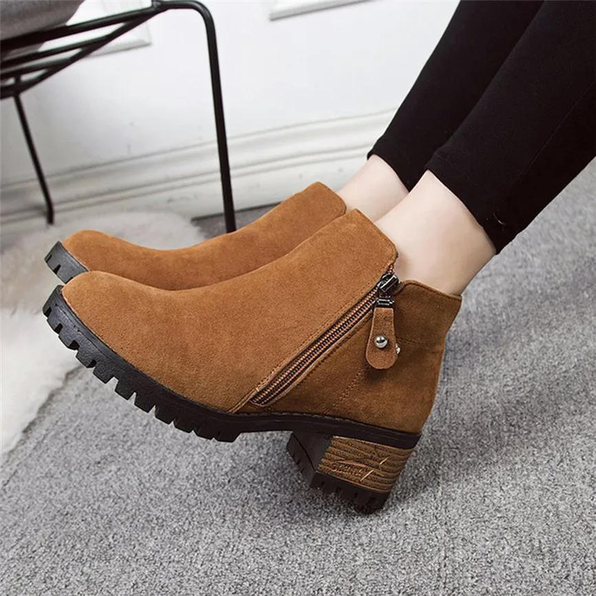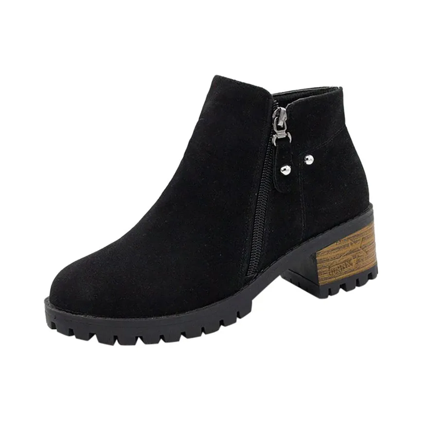 Short Boots Women Flock British Style Pure Square heel Round Toe Zipper Boots Chunky Heels Vintage Women Boots Heel Boots