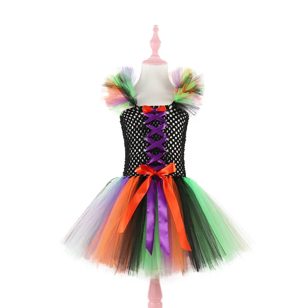 Нарядное платье принцессы из тюля с бантом и принтом на Хэллоуин для маленьких девочек