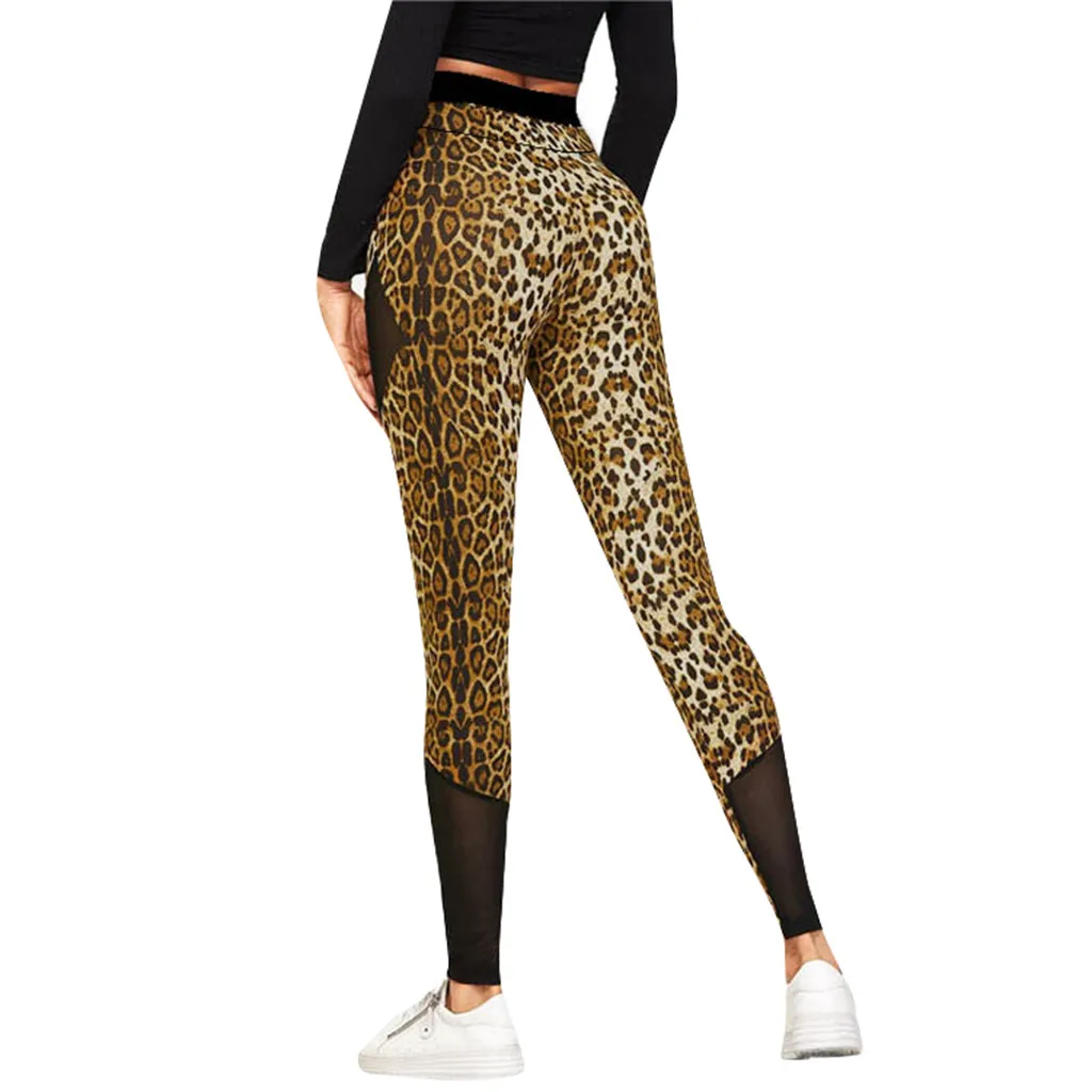 Сексуальные сетчатые штаны для йоги, женские повседневные леопардовые леггинсы с высокой талией, Леггинсы для йоги, calsas de mujer deportivas