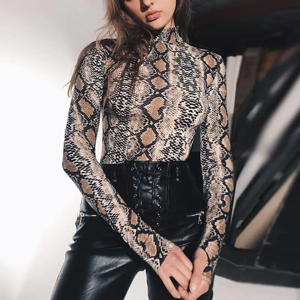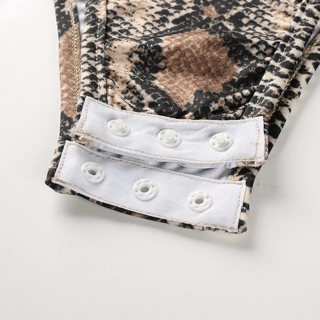 Женский сексуальный боди со змеиным принтом, Модный комбинезон с высоким воротом, Combinaison Pantalon Femme, 2019