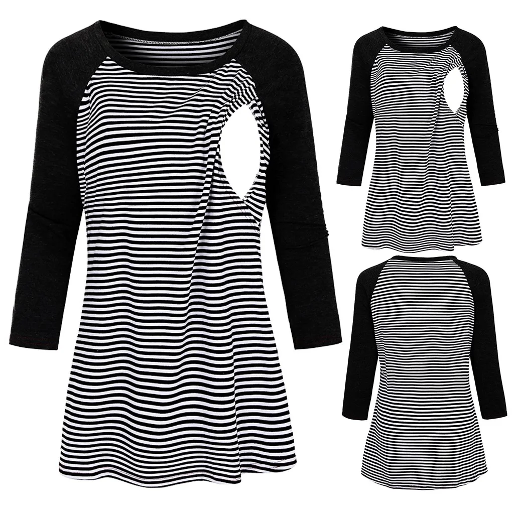 Женщины Материнство 3/4 рукав полосатый кормящих Топы Футболка для грудного вскармливания