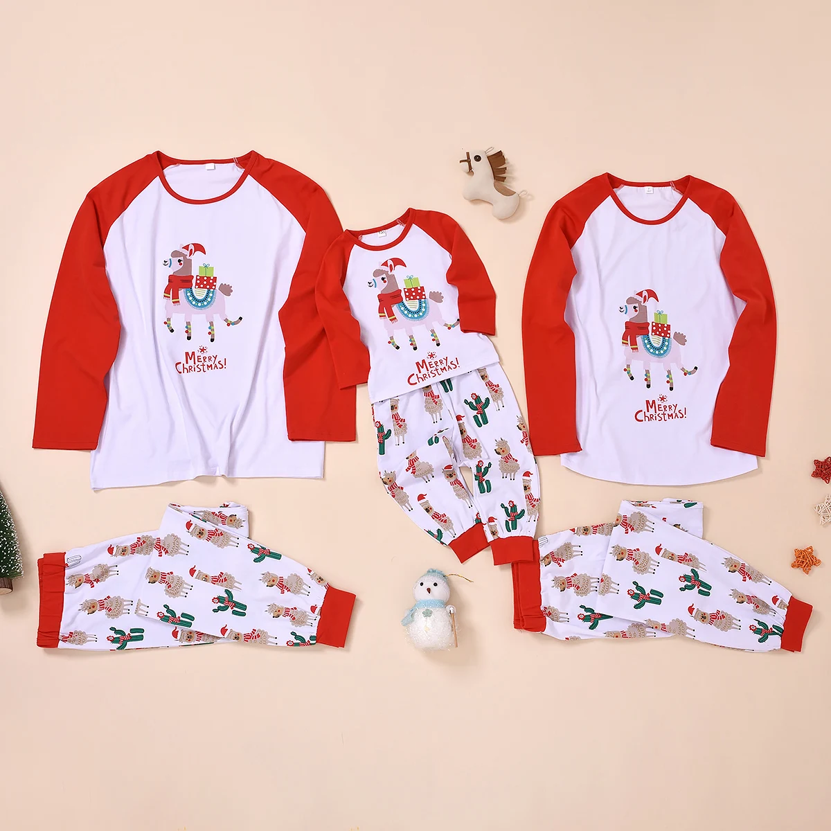 Alpaca Print Christmas Family Matching Clothes Suit Shirt & Pants Homewear Pajamas Set