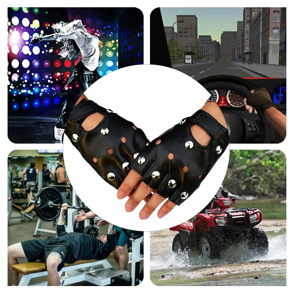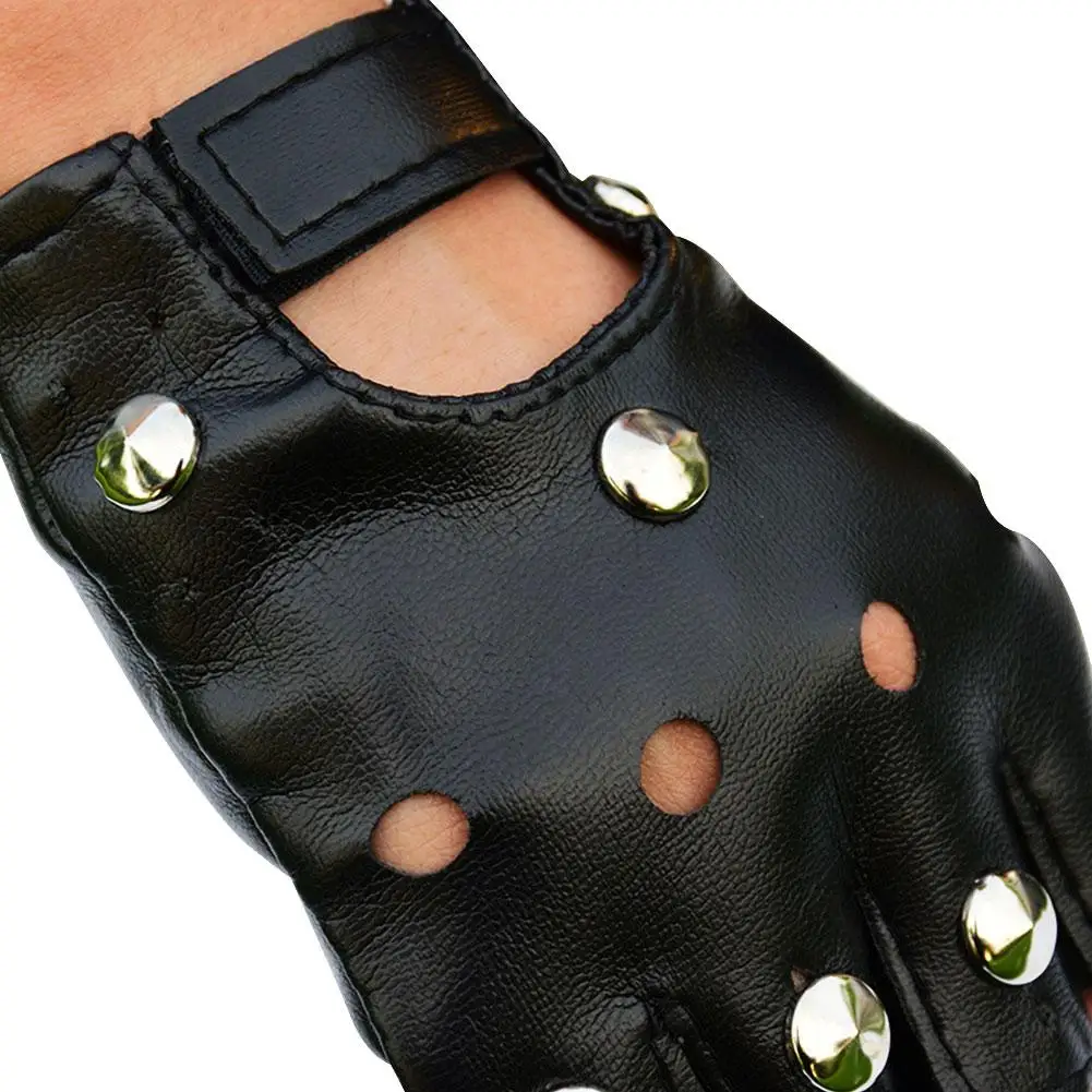 Мужские кожаные перчатки с полупальцами, мужские байкерские перчатки с полупальцами для вождения, черные перчатки без пальцев в стиле панк 4