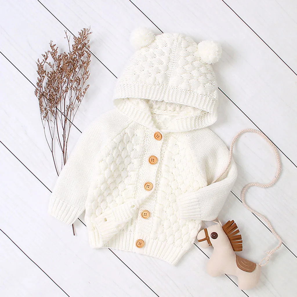 Зимняя куртка для новорожденных мальчиков и девочек теплое пальто Вязаная верхняя одежда, свитер с капюшоном
