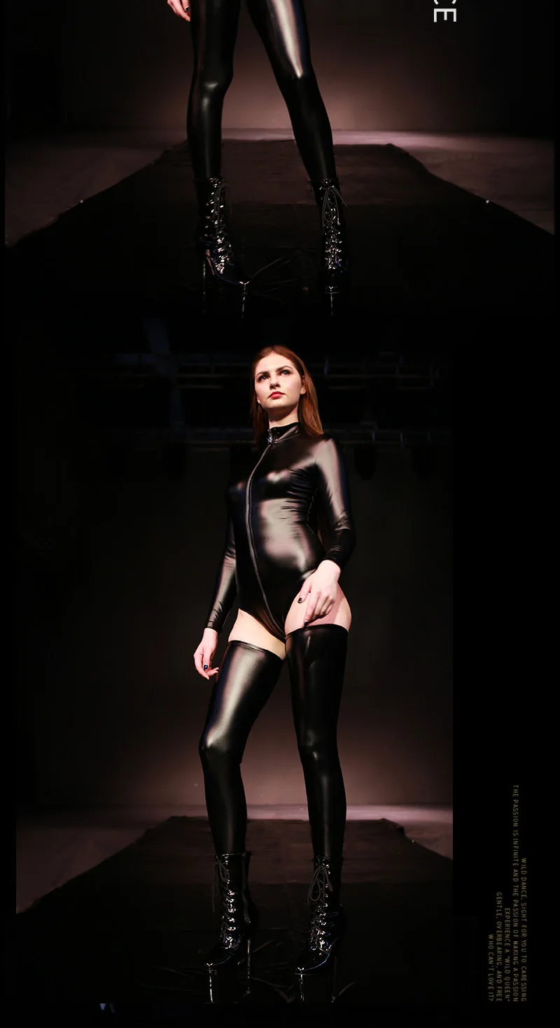 XXL размера плюс, боди с длинным рукавом, сексуальные боди с высокой посадкой, женские готические Комбинезоны из латекса и полиуретана, цельный купальник