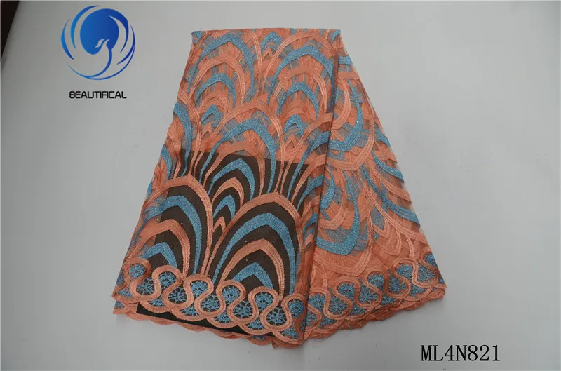 Красивая африканская кружевная ткань, новинка 2019, Вышитое Тюлевое кружево, нигерийское кружево с камнями, 5 ярдов/партия, ML4N821