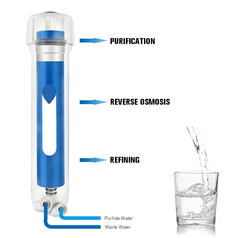 (75 галлонов в день) Высококачественная Мембрана RO может производить 75 галлонов очищенной воды в день (11,8 литров в час). 8 стаканов по 8 унций стаканов воды рекомендуется 1 галлон. Вы можете получить галлон воды примерно за 20 минут. Если вы готовите суп, например, готовите чайник с чаем или кофе, вам необходимо вытереть более 2-3 бутылок с водой. Но теперь, вам просто нужно открыть кран очистителя RO с помощью этой мембраны RO, вы можете получить питьевую воду.