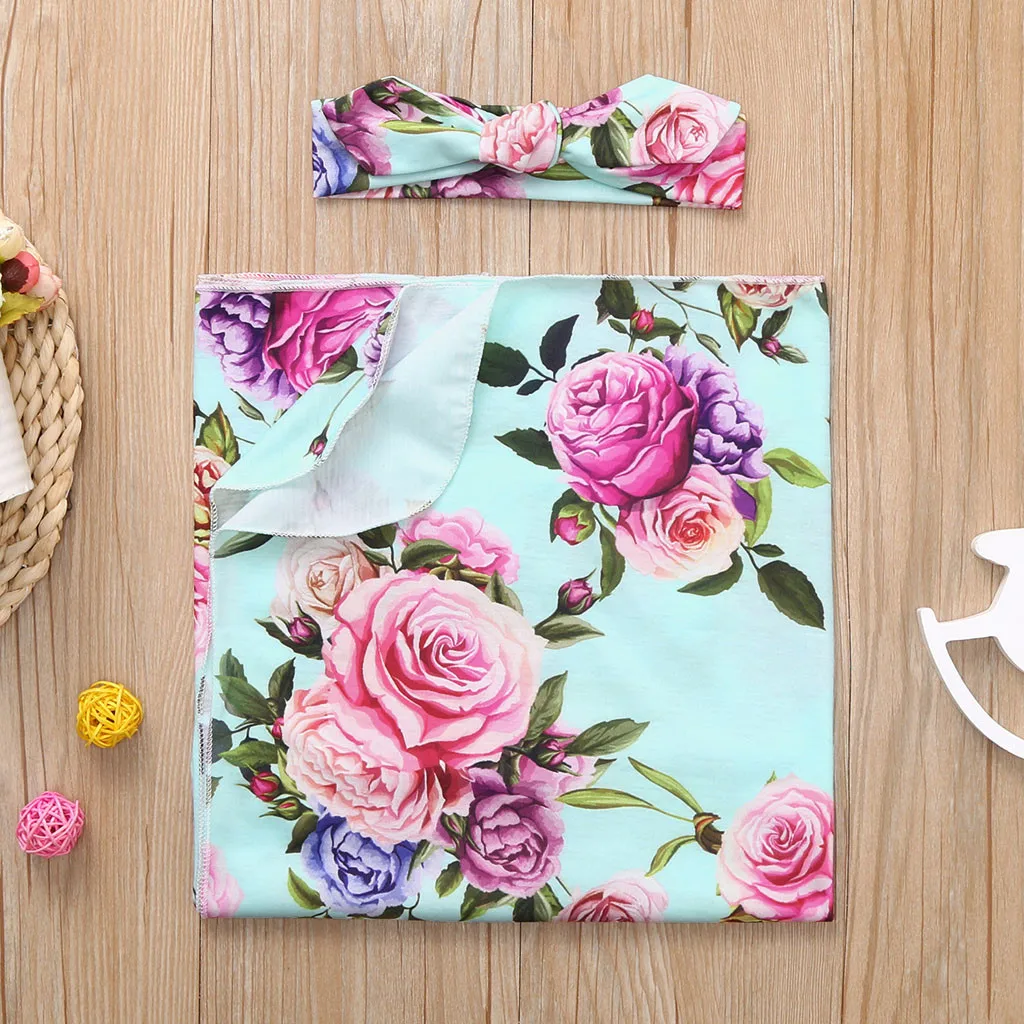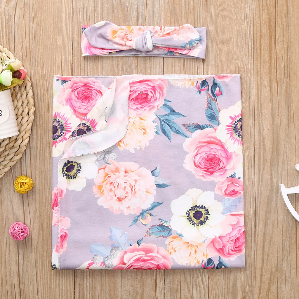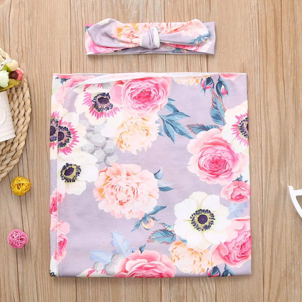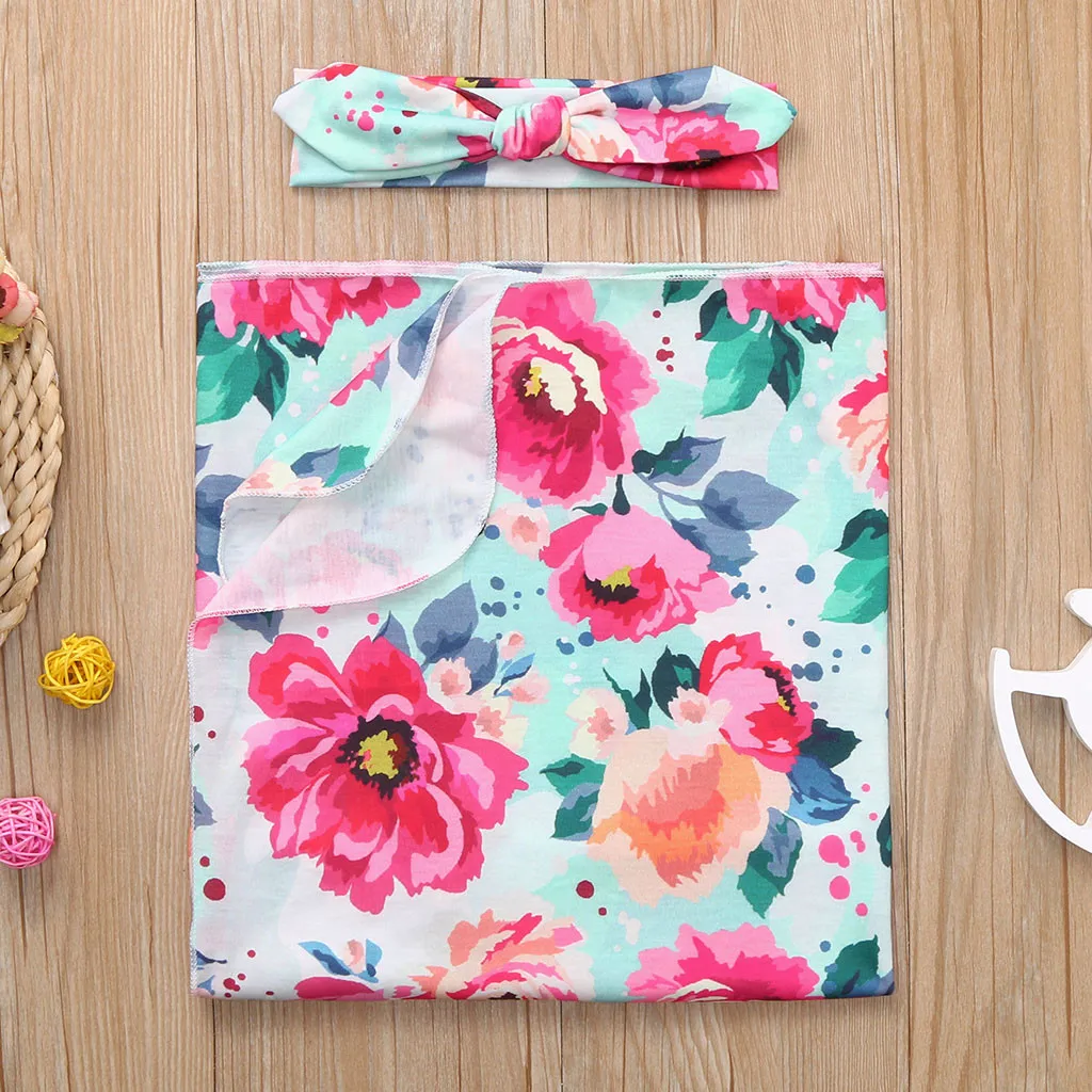Для малышей, одеяло с цветочным узором для пеленания, одеяло для пеленания, повязка на голову