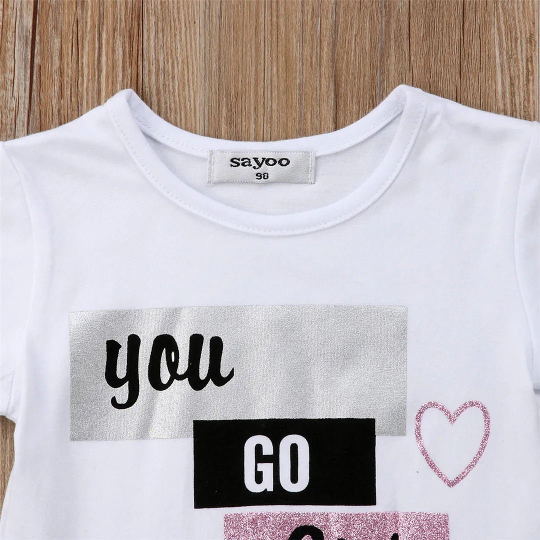 Новейшая модная одежда для маленьких девочек! Высокое качество и новый 100% Основной цвет: как на картинке Новинка в моде Материал:ХлопокВнимание: если ваш ребенок пухленький, мы рекомендуем выбрать больший размер, спасибо. Просим перепроверять размеры детей, рост и полноту по размерной таблице перед покупкой/подачей заявки. Спасибо за понимание. Посылка включает в себя:1x Футболки +1xЮбка Размеры таблицей: