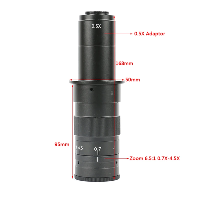 Objective Magnification Power by 0.7 - 4.5X(about 10 - 180X on the display)