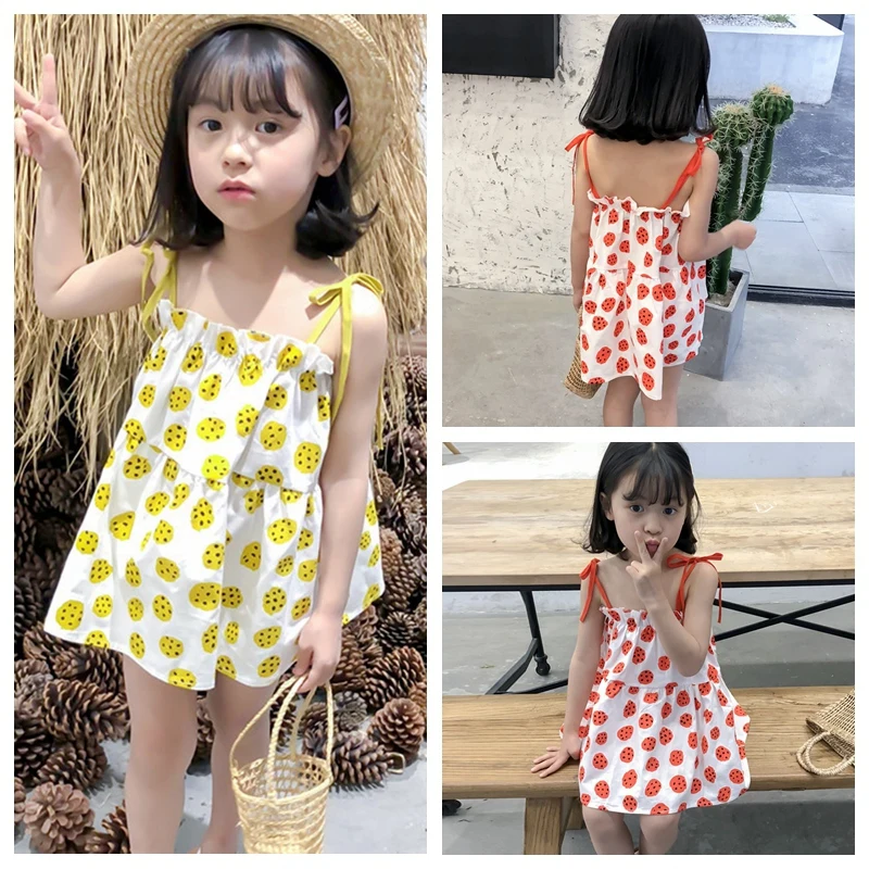 Летние Детские платья для девочек; повседневное модное платье на бретельках для маленьких девочек; платье принцессы без рукавов с принтом в горошек