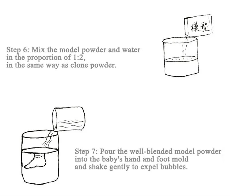 Шаг 7: Налейте хорошо смешанный модельный порошок в руку ребенка и форма нога и мягко встряхните, чтобы выгнать пузырьки.