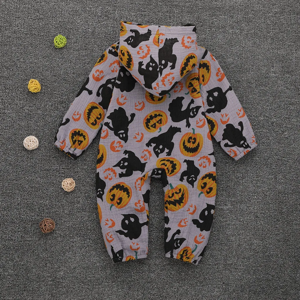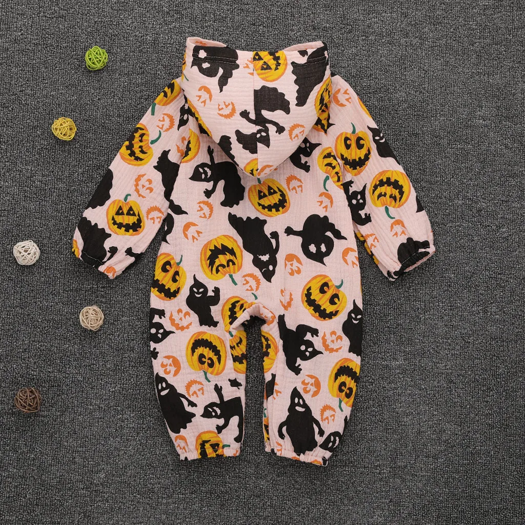 Для новорожденных, для маленьких мальчиков, костюм на Хэллоуин для девочки, с капюшоном комбинезон с изображением тыквы Детские комбинезоны