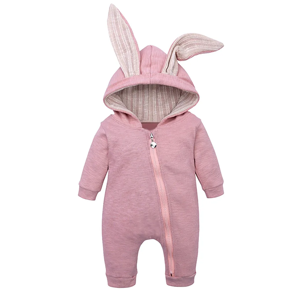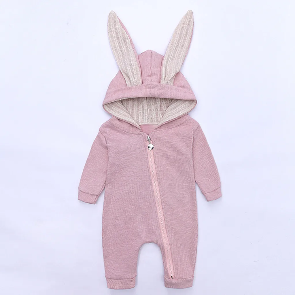 Для младенцев, для маленьких мальчиков и девочек однотонная куртка с капюшоном и заячьими ушками комбинезоны детские одежда