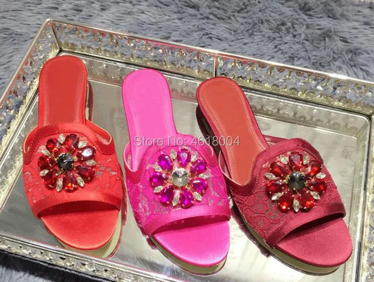KALMALL/Женские повседневные шлепанцы на каблуке с кружевом и кристаллами; Стразы; Женские летние босоножки на плоской подошве; Sapato Feminino