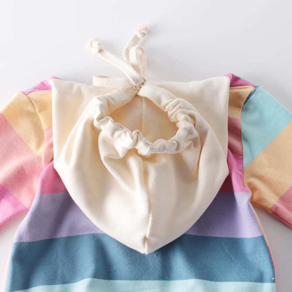Комбинезон для маленьких мальчиков и девочек; Осенний комбинезон с капюшоном с радугой для новорожденных; Хлопковый комбинезон с длинными рукавами; Одежда для малышей