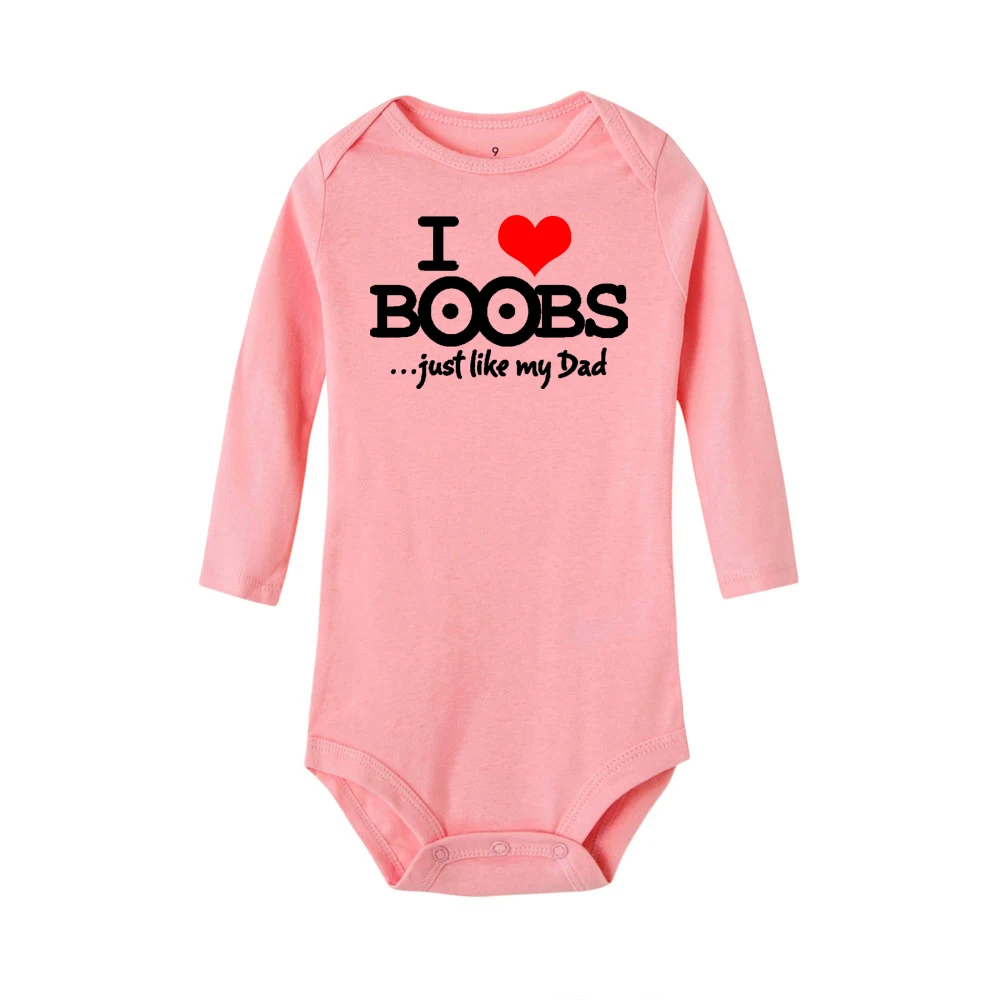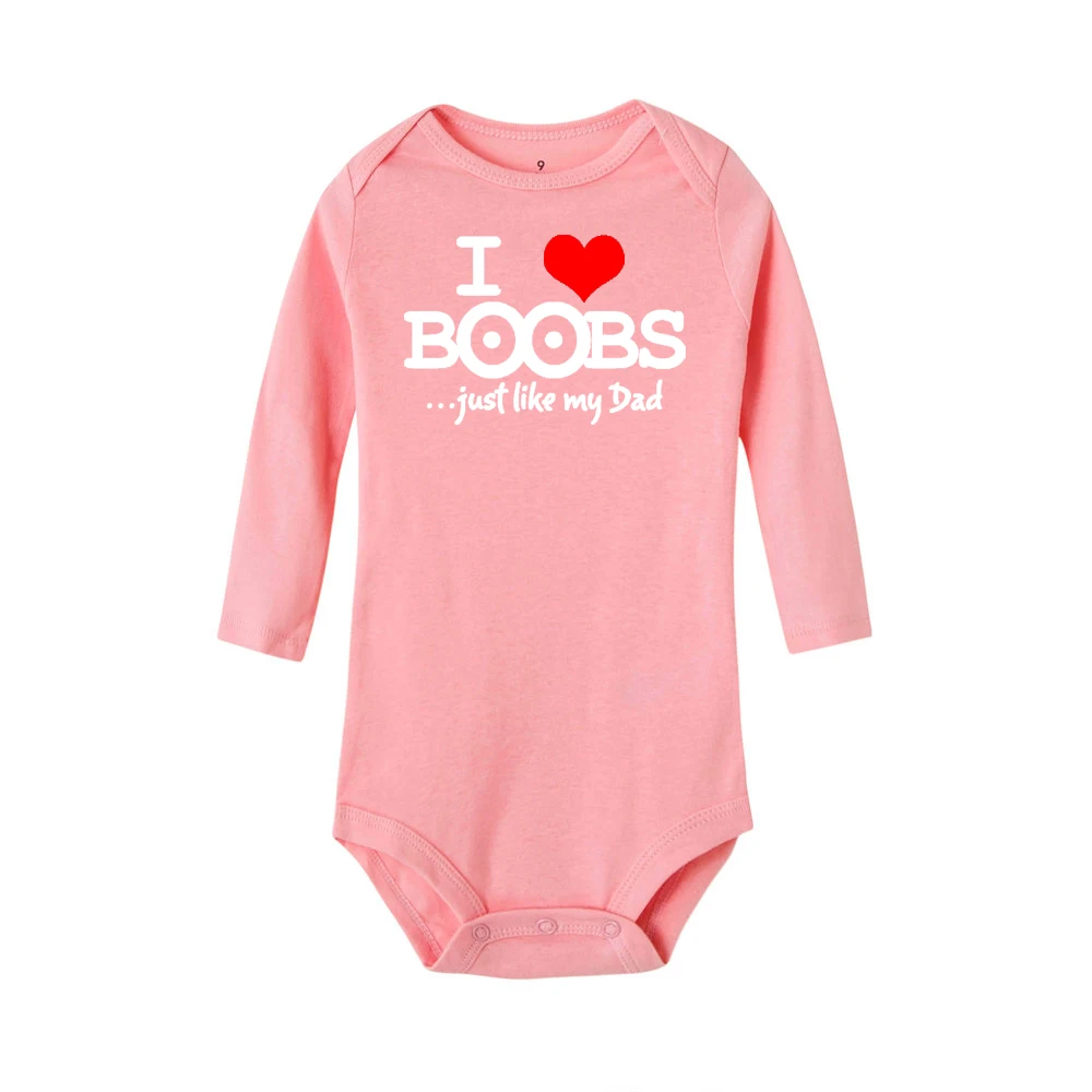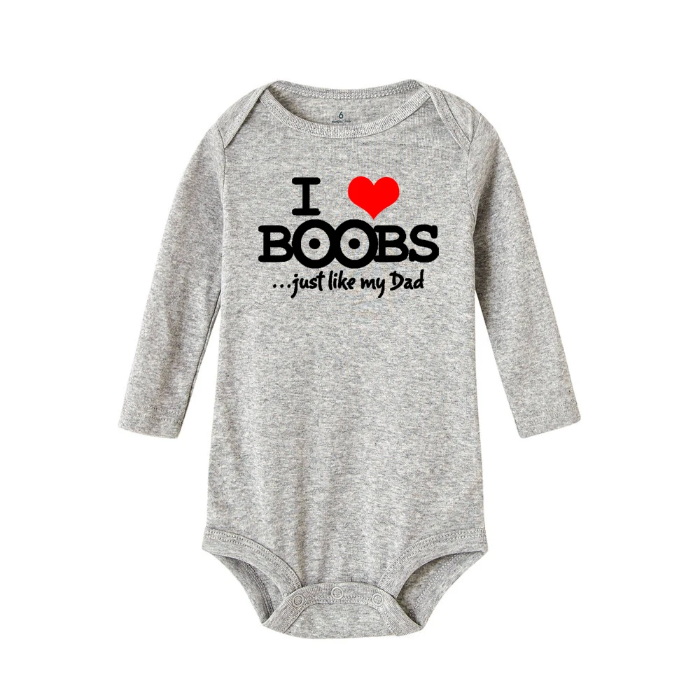 I Love Boobs Just Like Daddy Newborn Baby Boy Girl Cotton Romper Funny Infant Toddler Unisex Fashion Long Sleeve Jumpsuit 0-24M