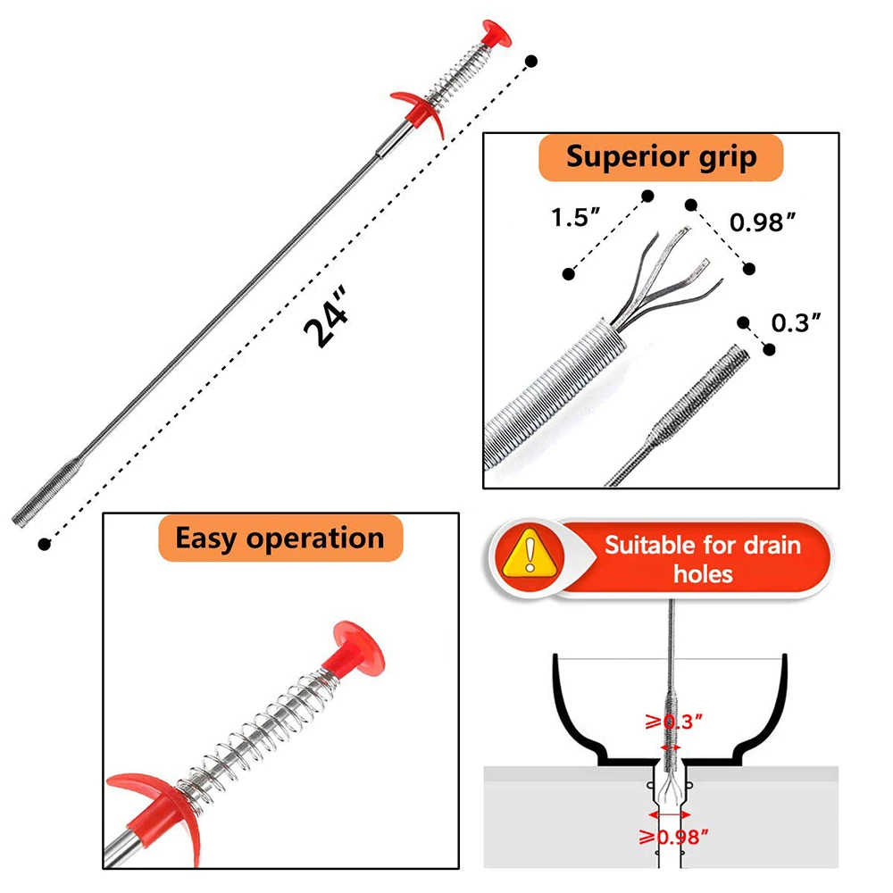 - Используйте подходящую мягкость и твердость, легко поддаться вставке трубки, как змея, длина металлической катушки длиннее, более глубокое очищение. В сочетании с чистящей щеткой, более чистой, нержавеющая сталь с захватом для когтей для волос, может управлять и другими препятствиями, легко зажимать муку