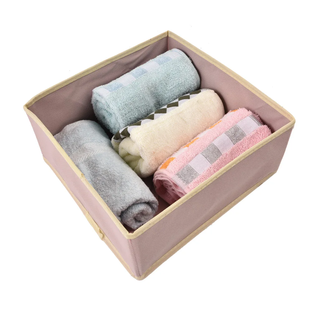 Features: Made of high quality polyester and nylon material, sturdy and durable to use. Easy to use and clean. 6 pcs storage boxes in different specification to meet your different needs. Multi-purpose storage box, holds all of your underwear, ties, socks, books and more. Keep your underwear organized and tidy, effectively save your time and space. Specification: Material: Polyester + Nylon Color: Beige / Gray / Pink (Optional) Size: (2PCS) S: Approx. 28*14.5*12cm / 11.0*5.7*4.7 inch (2PCS) M: Approx. 28*28*12cm / 111.0*11.0*4.7 inch (2PCS) L: Approx. 14.5*14.5*12cm / 5.7*5.7*4.7 inch Package list: 6 * Clothes storage box (In different size)