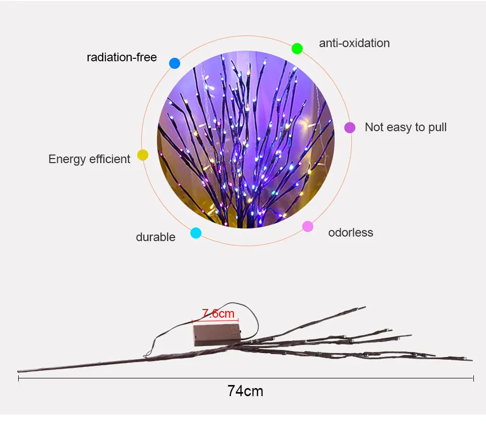 Описание: Супер яркий и низкое энергопотребление. Контроллер может выбрать один из двух режимов: устойчивый светильник или мигающий. Шарик лампы является водонепроницаемым и может использоваться на открытом воздухе. Ветви сгибаются, вы можете настроить их, сделать их скручивающимися, или вытянуть их вверх или вниз, чтобы создать свой собственный естественный вид. Ваза украшения, окна, крыльца, гостиной, столовой и т. Д. Параметры: Материал: АБС-пластик + Поликарбонат Светодиодный лампы: 20 Модель: устойчивый светильник, вспышка Светильник Цвет: белый/теплый белый/RGB (не мигает тип)/синий/розовый/фиолетовый Питание: 2 батареи AA (не входят в комплект) Управление метод: включение/выключение Вес: 70 г Посылка включает в себя: 1 х светильник для ветки дерева
