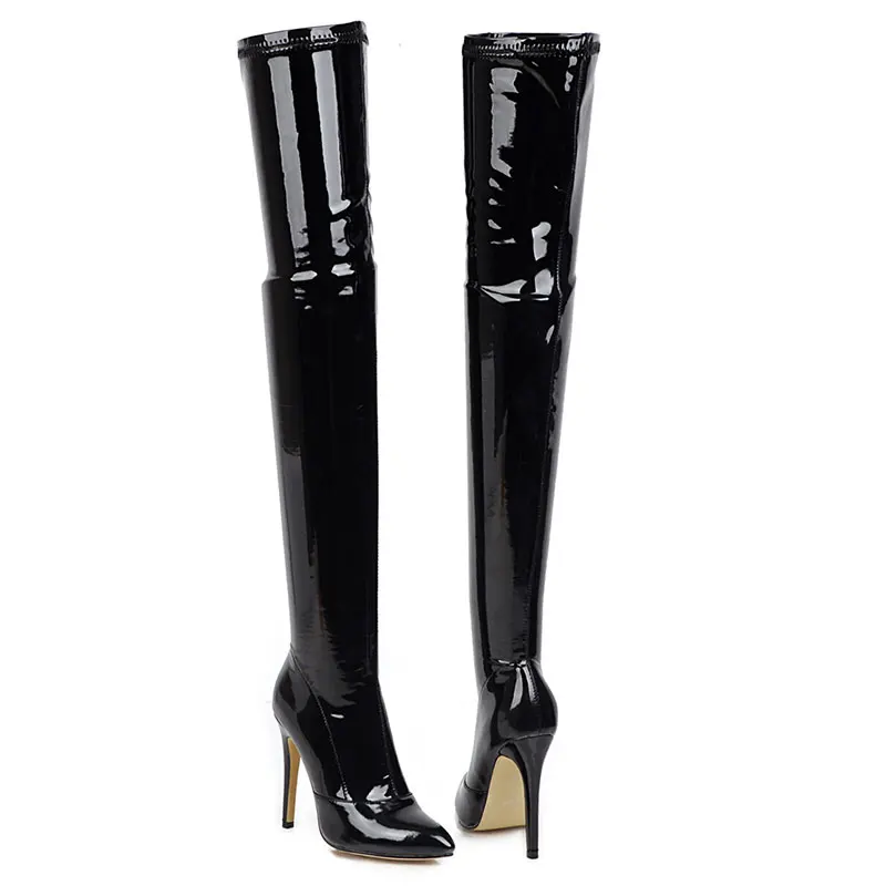 Sgesvier/высокие сапоги до бедра размера плюс 46; Женская эластичная обувь из лакированной кожи; Женские повседневные зимние теплые облегающие высокие сапоги на молнии; G787